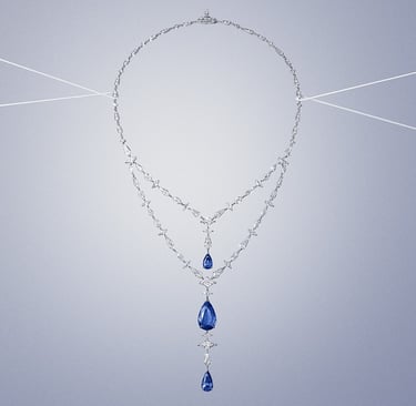 Cartier High Jewellery Collection En Équilibre, Necklace Parcae: platinum, sapphires, diamonds
