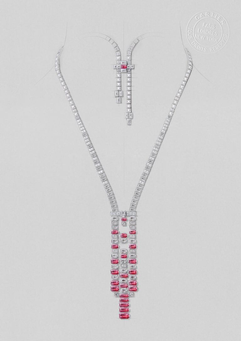 With this necklace, Cartier celebrates the harmony of a rare combination of stones: one batch of rubies and one batch of diamonds, brought together by their complementary emerald cut.