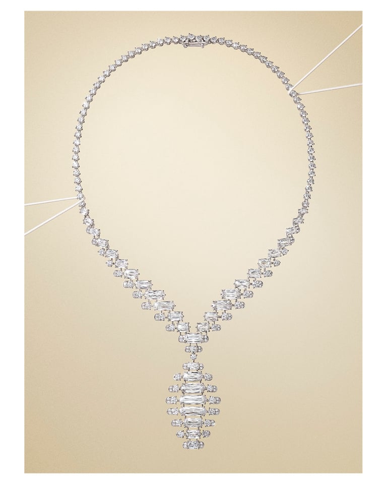 On the front and back of the necklace are two elegantly matched pendants – the one on the back is adjustable, testament to the expertise rooted in the Maison’s great tradition of transformable jewellery. The inspiration behind this fluid, mobile piece? Jellyfish and their free-flowing movements, elevated by Cartier into an abstract motif.