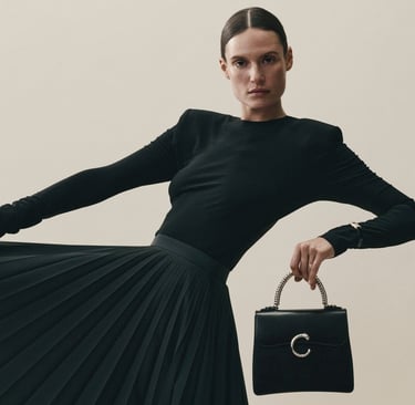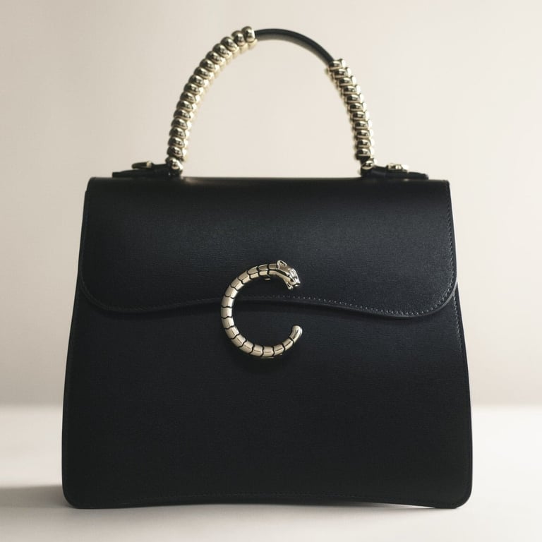 First introduced in 2021, the Panthère C stands out for its sculptural clasp in the form of a majestic "C" ending in a panther's head — a signature of Cartier's bold elegance. The grained leather handle, adorned with softly curved metal rings inspired by the Maison's Déclaration watch, shimmers with movement and light. With its pure lines, fluid form, and exquisite craftsmanship, the Panthère C de Cartier reveals the timeless grace of a jewel of a bag.