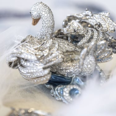 Another extraordinary animal enters Chopard’s bestiary: crafted in 18-carat ethical white gold set with more than 34 carats of diamonds, the swan’s body is perched upon a titanium base evoking seafoam, delicately set with diamonds. Its silhouette is sculpted with the serene elegance of a swan gliding across still water.