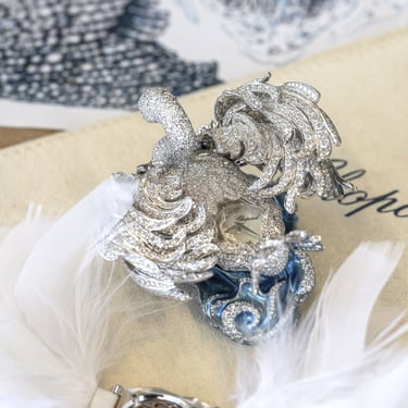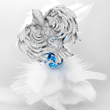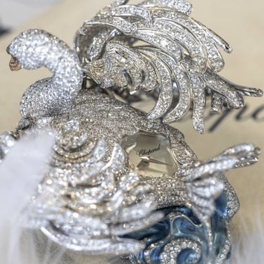 A singular creation, this timepiece is the result of 900 hours of research, design and artisanal work. From the feathered clasp to the mechanical unfurling of the wings, every detail reflects the vision of Chopard Co-President and Artistic Director Caroline Scheufele and the close collaboration between artisans, designers and master watchmakers.