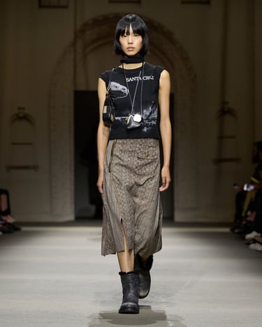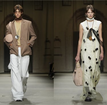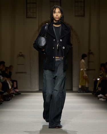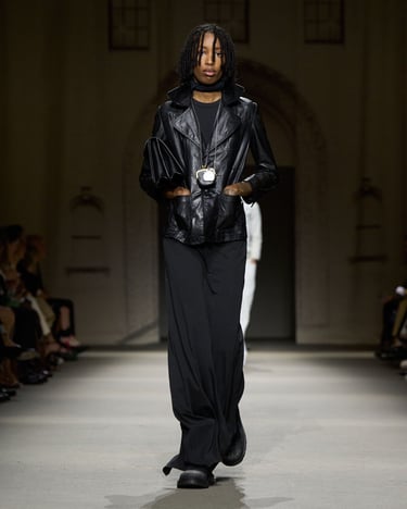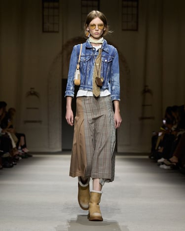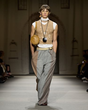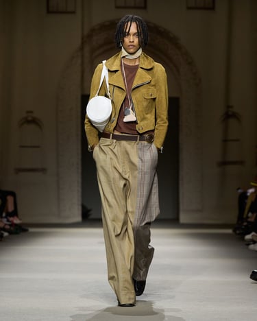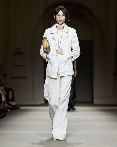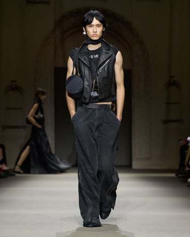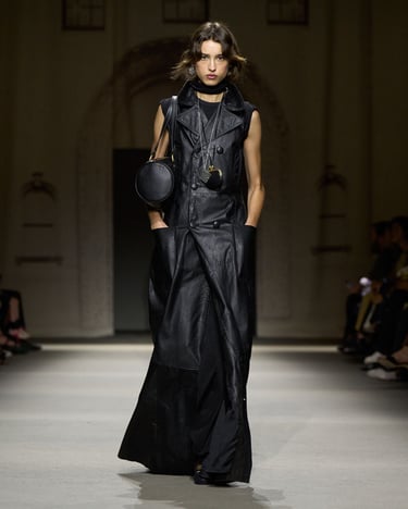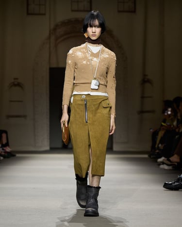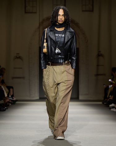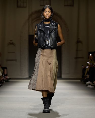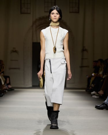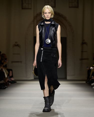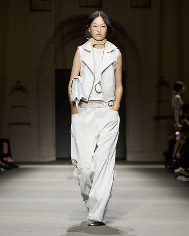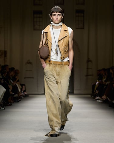 Inspired by the energy and vitality of the streets of New York City, Spring 2026 features a variety of beautifully treated leathers in suede and nappa, some with a soft, waxy finish, and others with loveworn effects and rub-off foil elements, grounded by oversized trousers in repurposed denim and workwear materials, as well as tailored pants and skirts. The palette skews light this season, with a combination of whites, honey browns and tans alongside faded blacks. Contrast comes with soft pastel blues, yellows and greens and pops of metallics.