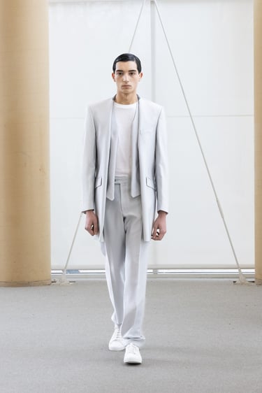 The fossilized shell is a work of art sculpted by time, expertly linked to thin chains and pearls, taking the form of a talismanic ornament in the necklaces worn by Francisco, telling the story of the prehistoric fragments he wears.