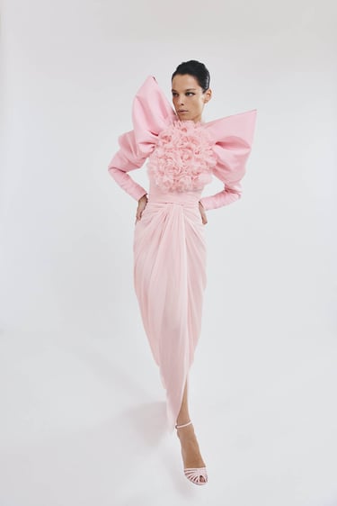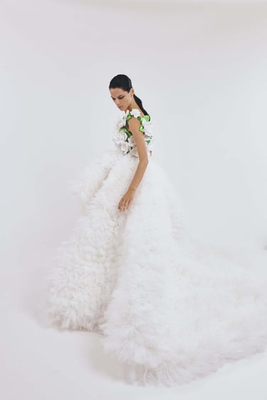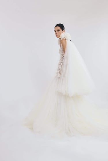 Giambattista Valli’s Haute Couture N°29 evokes a dreamlike garden of muses, where softness and romance reign. Silhouettes breathe with volume conjured purely through fabric, absent of structure, shaped by hand and instinct. The collection nods to 18th-century elegance and 1950s couture, blending historical references with modern irreverence. Details like floral embroideries and airy draping create a delicate balance of lightness and complexity. It’s a quiet celebration of beauty - a living painting in motion.