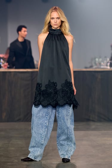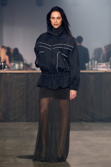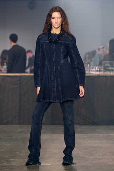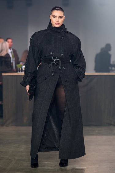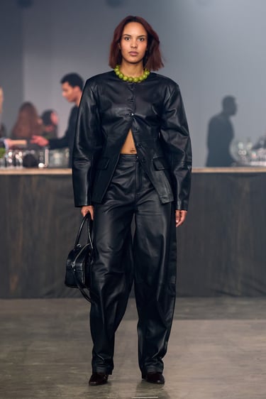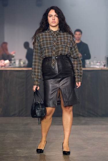 The Gestuz AW26 show unfolds inside a stripped, industrial space. At its center stands The Smokey Mirror bar. There is a sense of arrival: faux fur coats, high necks, a wollen scarf wrapped closely around the face. As if the women just stepped in from the street. A leather jacket is removed and hung over the bar, revealing details of the outfit beneath. Slowly, the bar fills. Look by look, woman by woman, representing the breadth of the collection and the diversity of women within it.