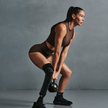 “The matte material feels so nice — very soft yet still secure and not restrictive,” says Nike athlete and Paralympic medalist Beatriz Hatz. “I feel powerful in it.”