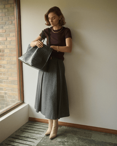 Expanding the LIÉ LEATHER category, the collection features the Eva Weekend Tote – its hero piece – available in grosgrain and croc-debossed leather. Each variant is designed to adapt to daily life while developing character over time. Additionally, the Norma Tote and Stella Wallet return in two new colorways, crafted in a refined grosgrain finish that complement the LIÉ uniform and elevates everyday essentials. The collection will be available starting August 2025.
