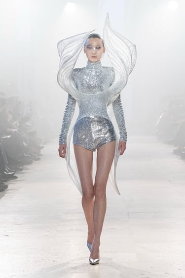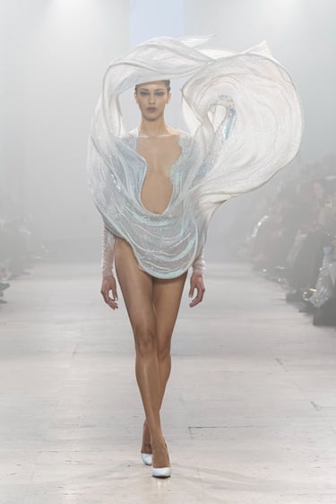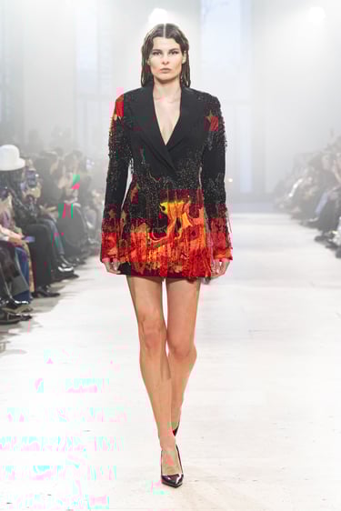 Rahul Mishra presented his Spring Summer 2026 Haute Couture Collection in Paris, weaving together science and ancient wisdom. Inspired by Carl Sagan’s “We are made of starstuff” and the Rig Veda’s five elements, the collection reflects the delicate balance of life and the cosmos.
