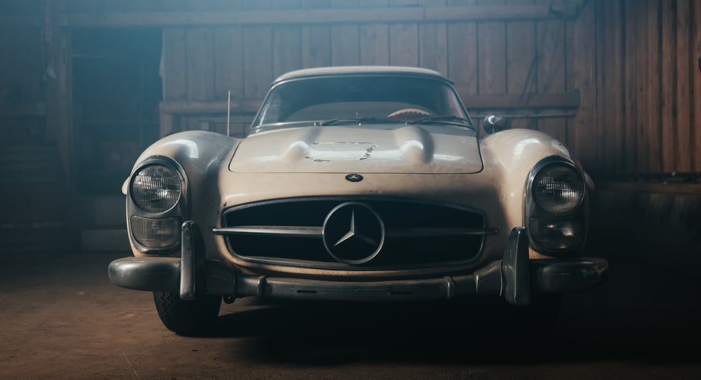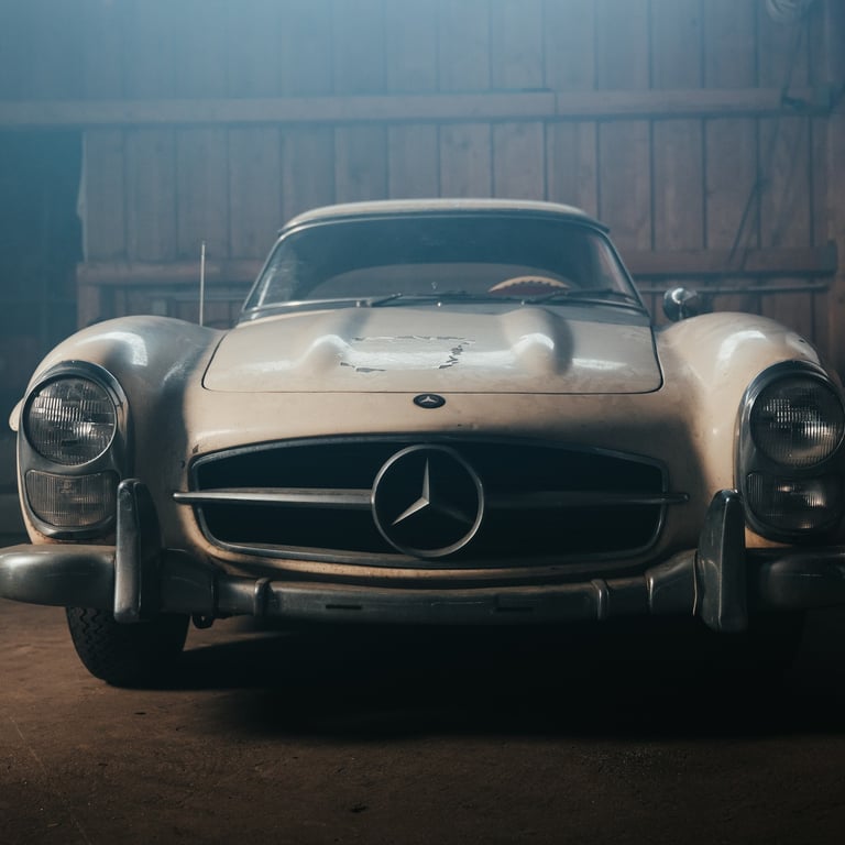 Spectacular barn find: 1960 Mercedes-Benz 300 SL Roadster (W 198) as a restoration item. Vehicle offered for purchase by Mercedes-Benz Classic on the Salon Rétromobile 2026.