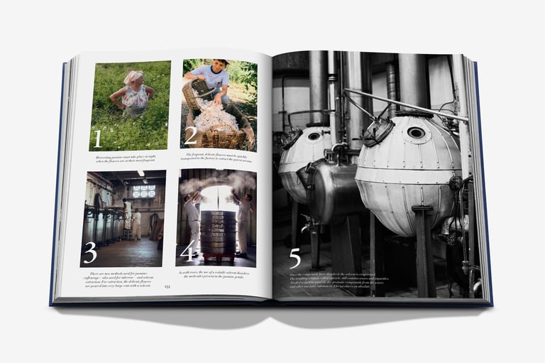 But the book’s essence goes beyond sharing Robertet’s history and legacy, guiding readers through the intricate process of extracting scents—from the moment an ingredient first buds to the instant it’s ready to grace our sense of smell—and breaking down each step, from seed to scent. The company’s unwavering commitment to naturals, sustainability, and excellence shines through on every page, and the book takes readers behind the curtain to discover the true magic of this industry—the magic of Robertet.