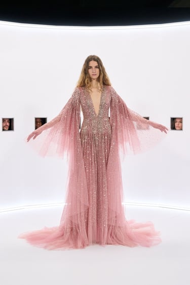 In Paris, Alessandro Michele presented the Valentino Haute Couture 2026 collection, titled Specula Mundi. Inspired by the Kaiserpanorama, the show proposed a slower, ritualized way of seeing. Haute Couture emerged as a space for contemplation beyond image saturation.